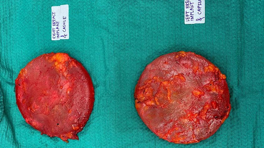 - Implant removal and full capsulectomy: this procedure is usually the removal of the superficial half of the scar capsule, followed by the removal of the implant, followed by the removal of the deeper half of the scar capsule. Usually, this leads to three items being removed per side (superficial half of capsule, implant, deep half of capsule)